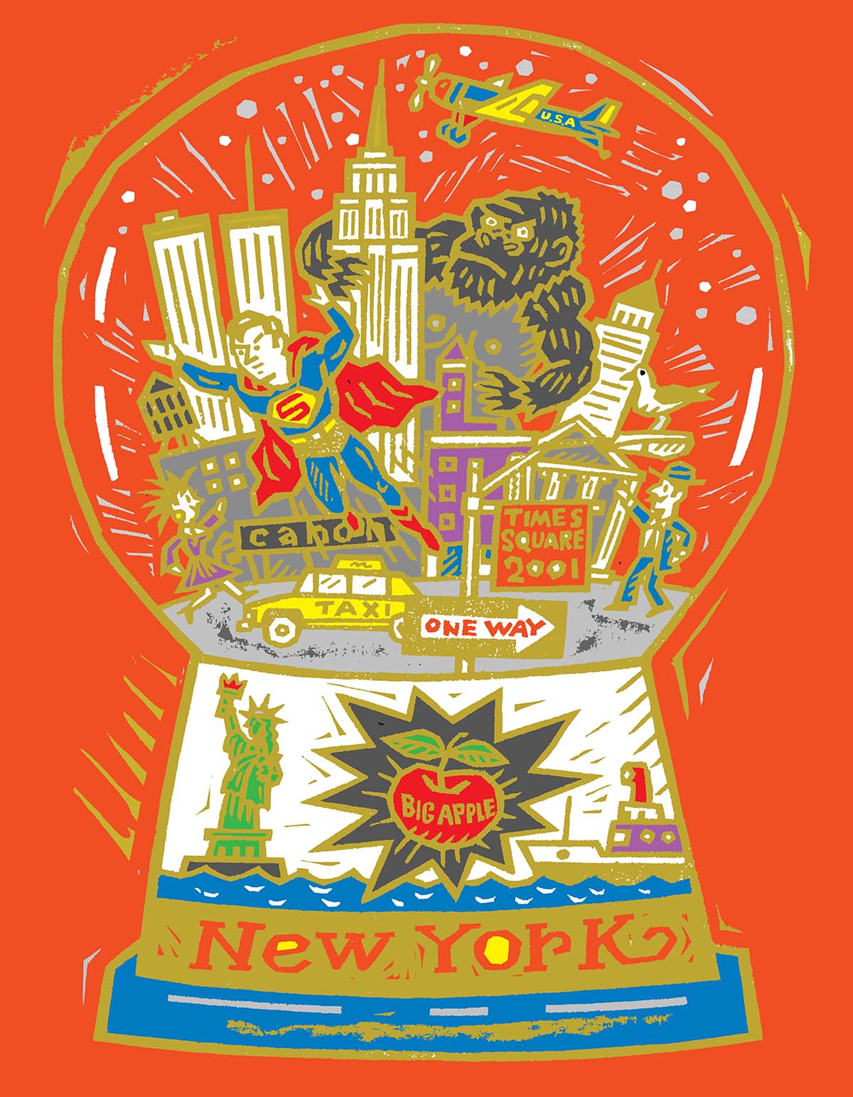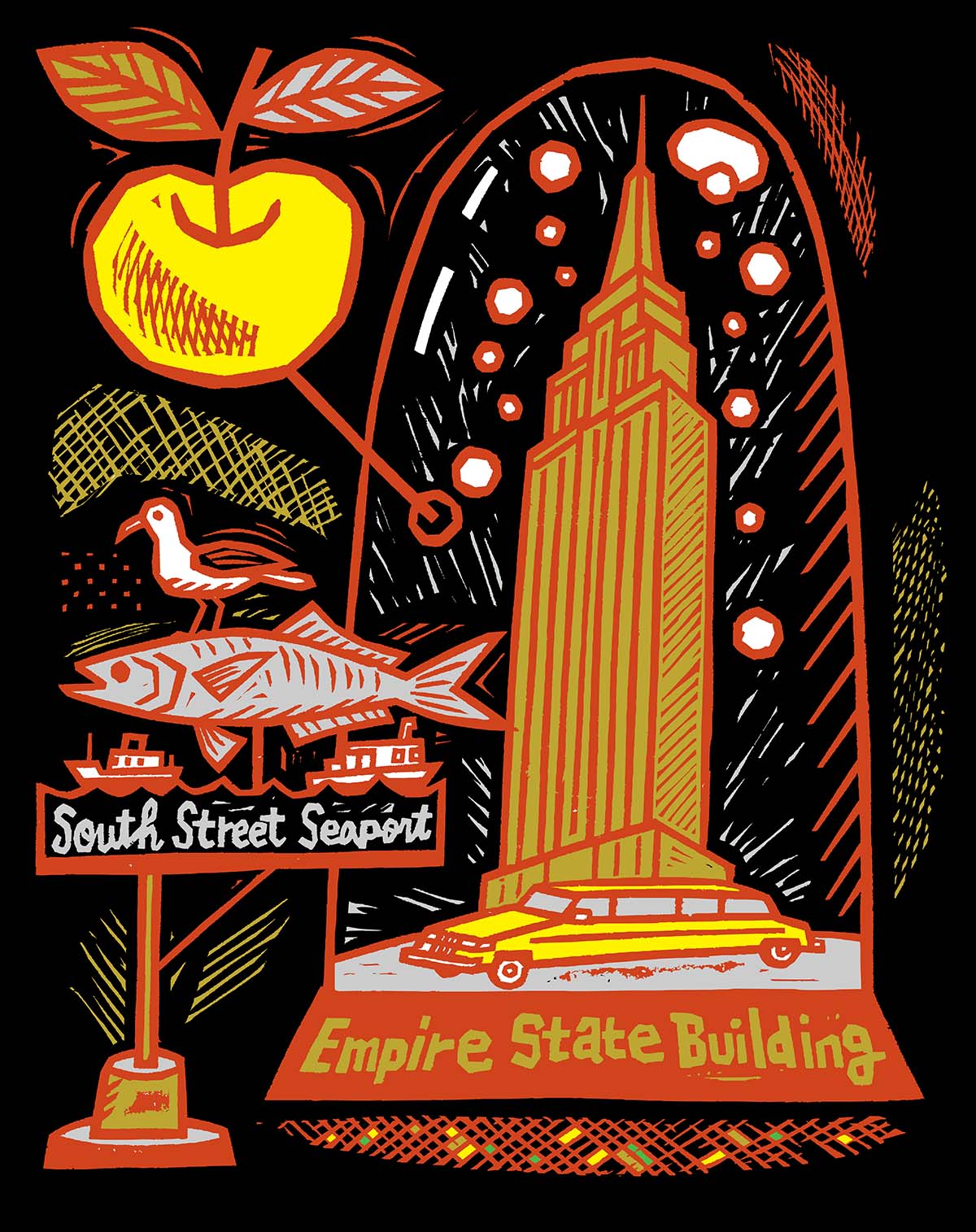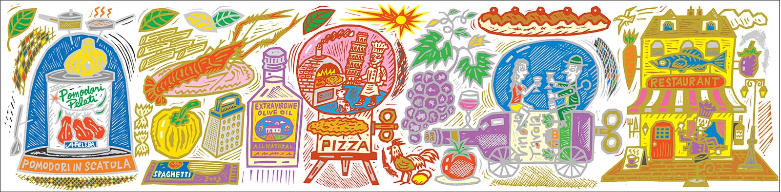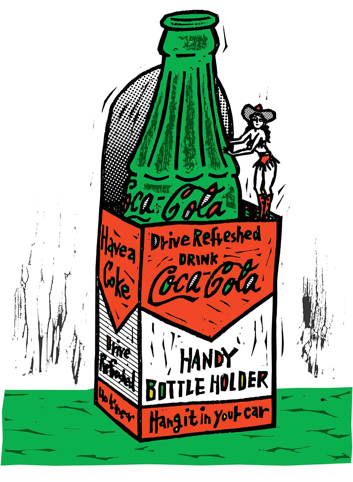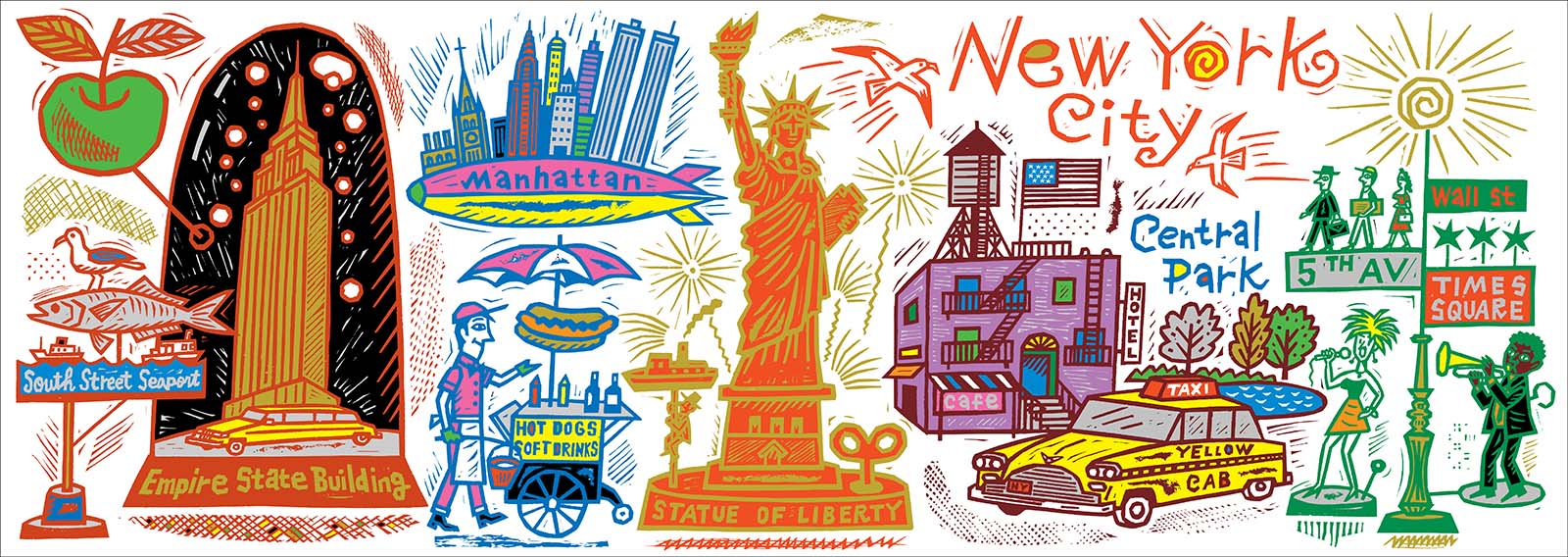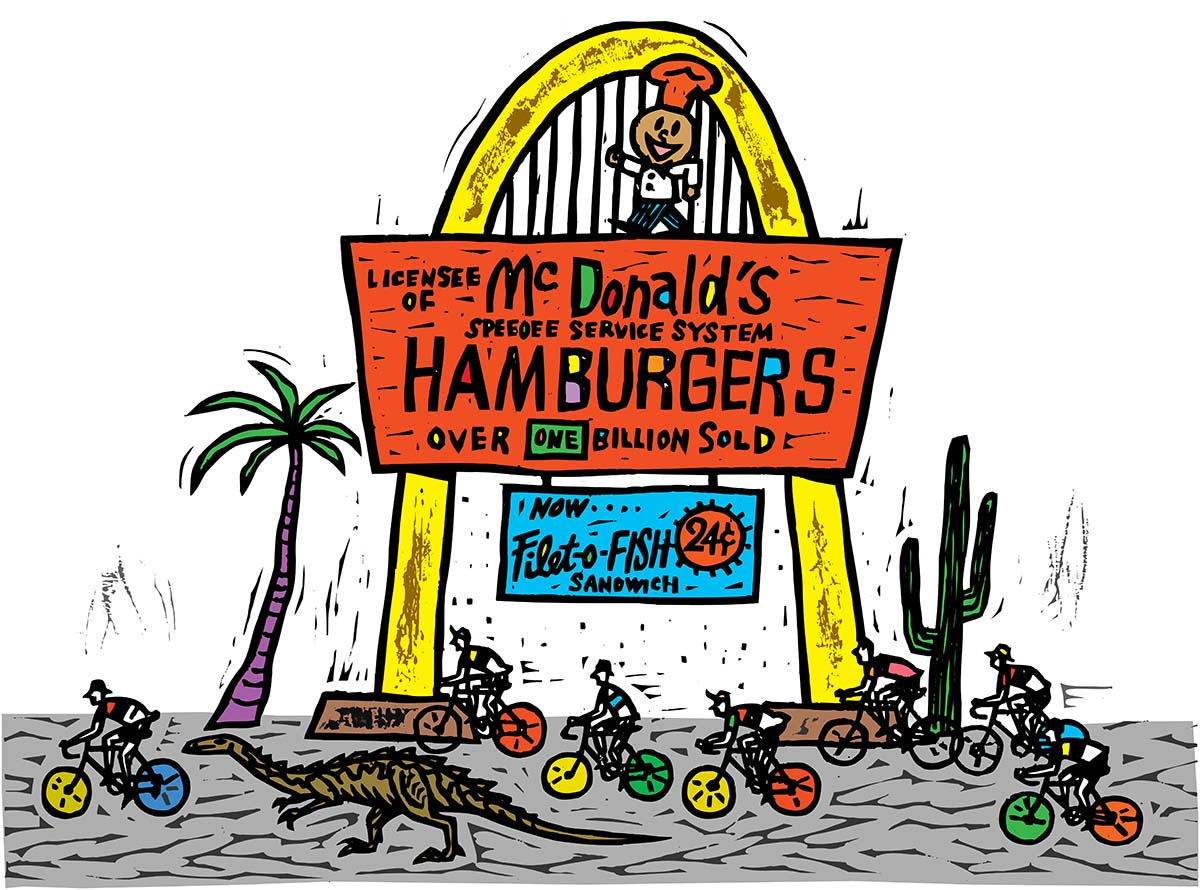 これらはアメリカンポップシリーズの木版画で、アメリカ横断旅行での印象から主に1980年代に多く作りました。モノクロ版画をデジタル化してフォトショップで色付けして出力した作品