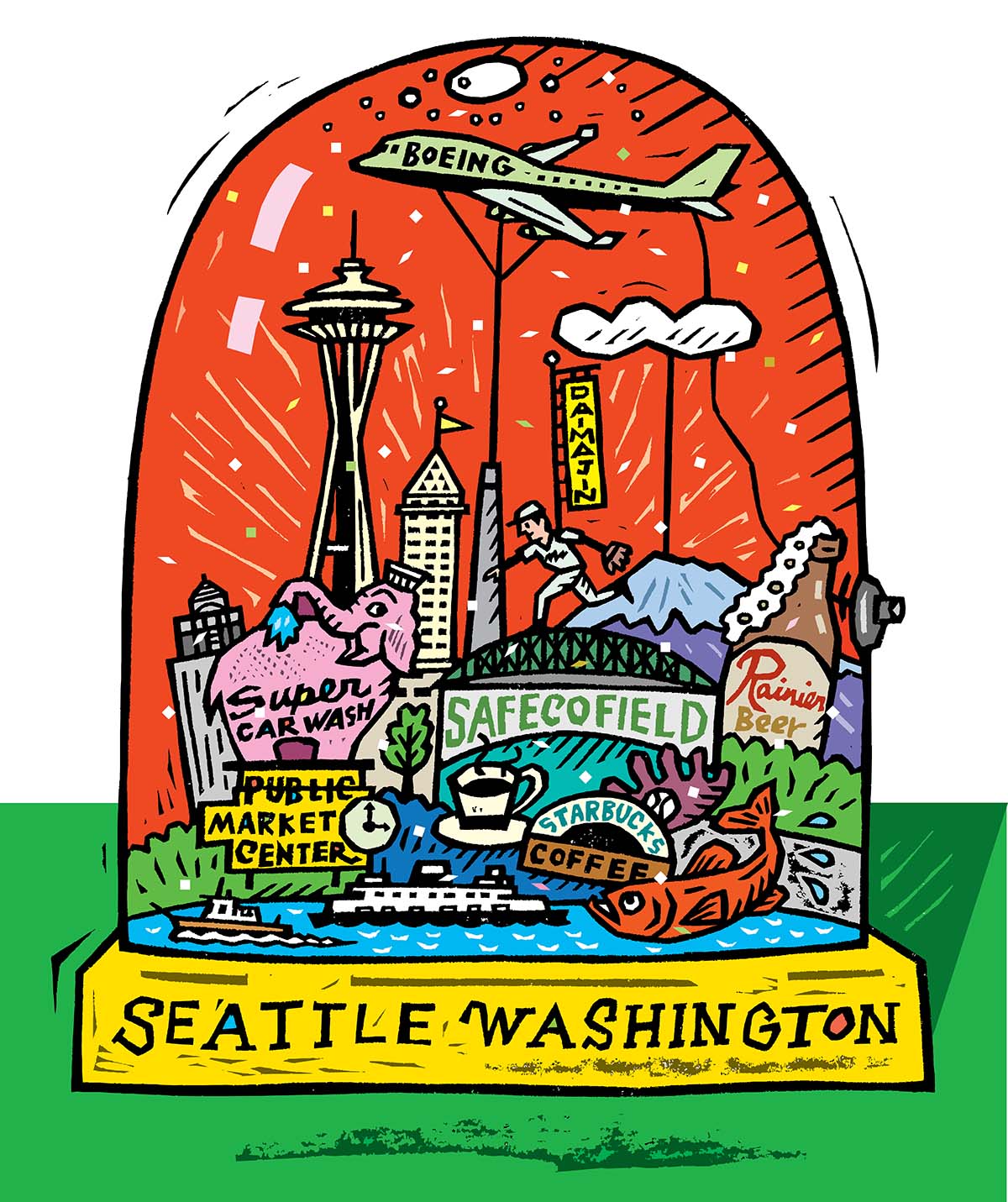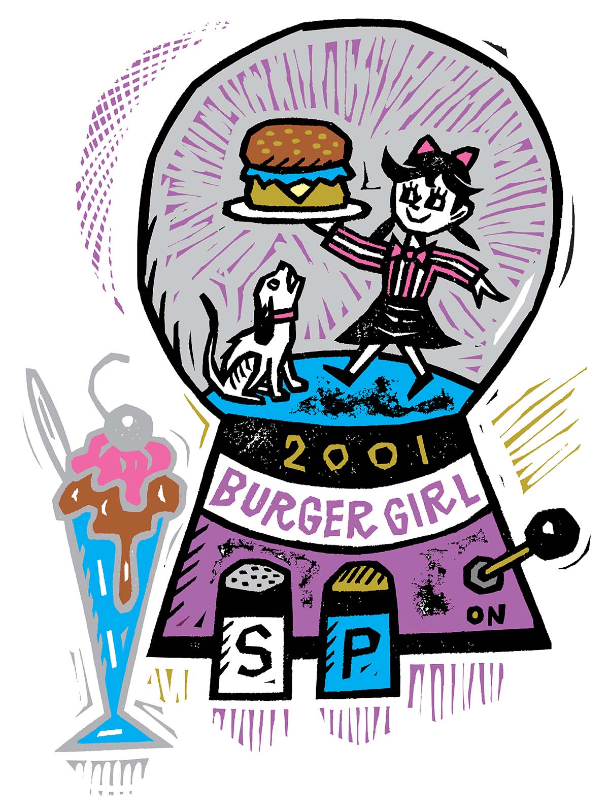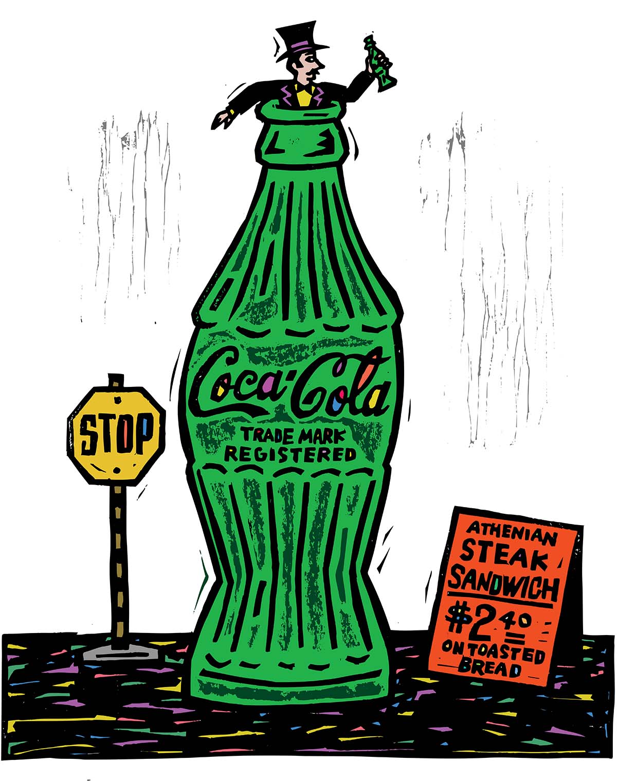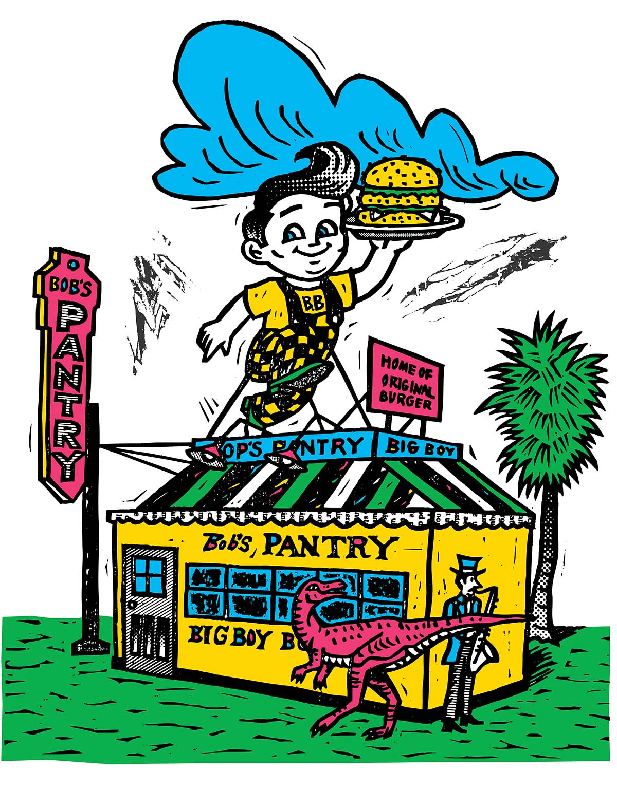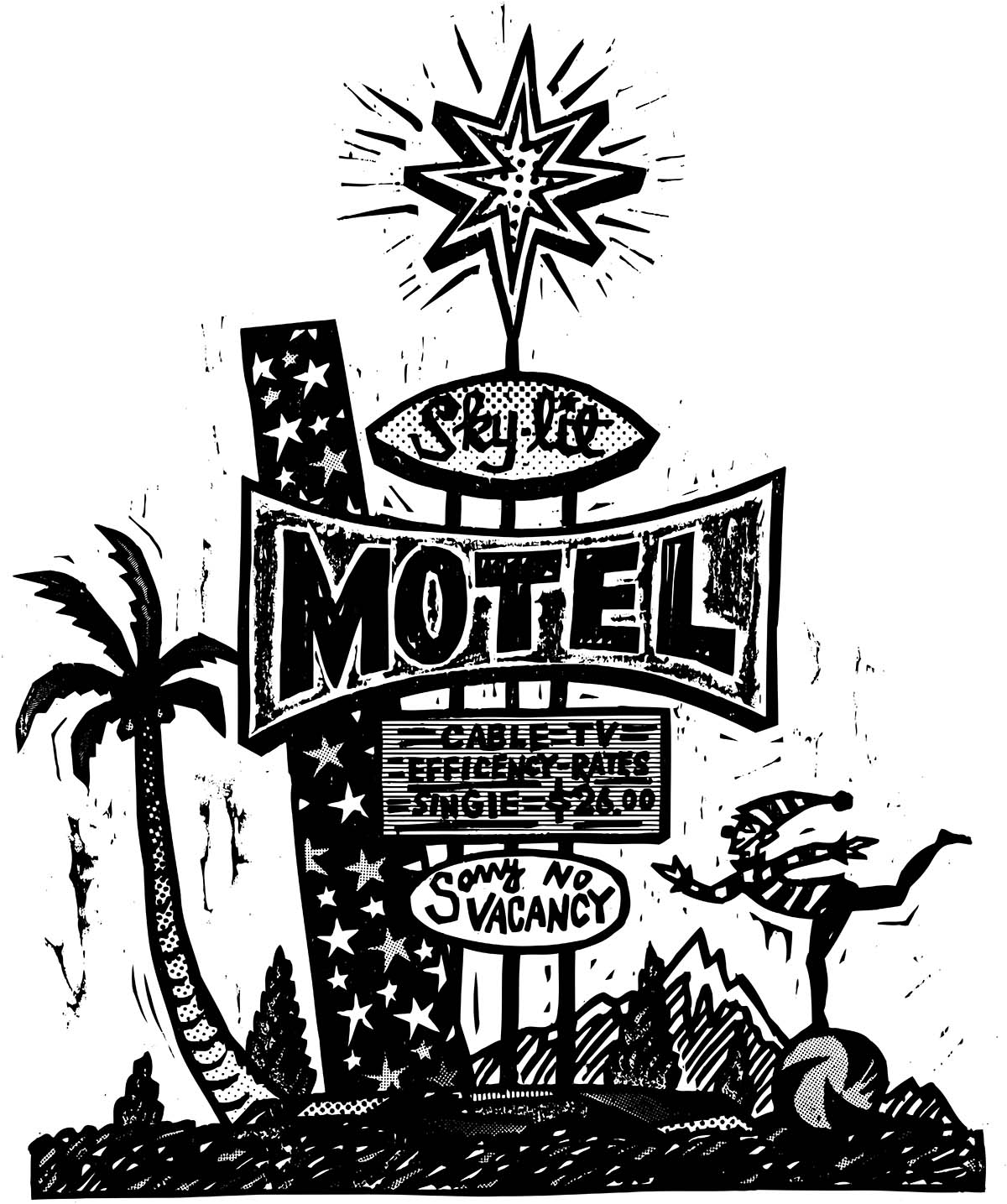 これらはアメリカンポップシリーズの木版画で、アメリカ横断旅行での印象から主に1980年代に多く作りました。モノクロ版画をデジタル化してフォトショップで色付けして出力した作品