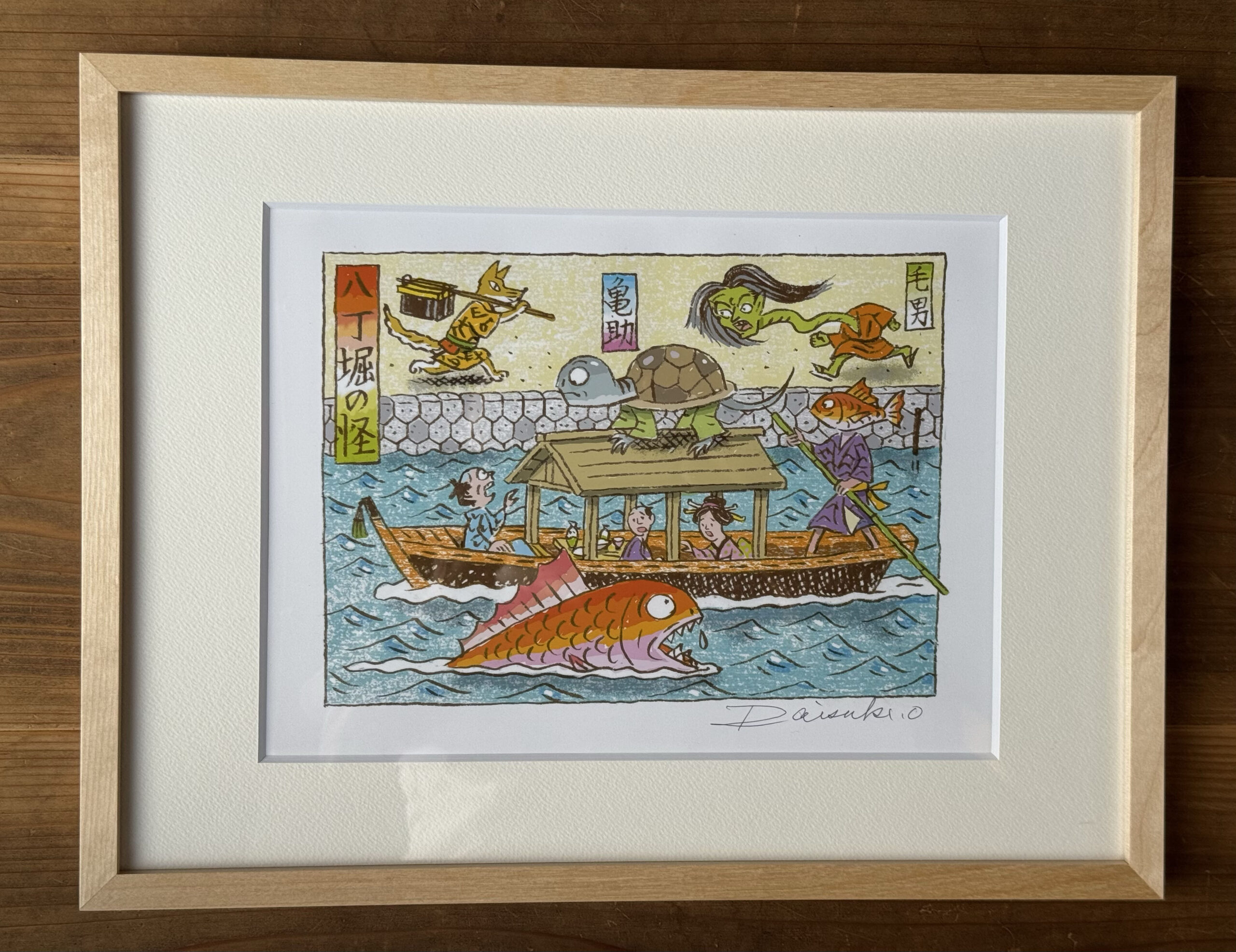 ●和紙に筆で描いた線画をスキャニングして、フォトショップで色付けした作品