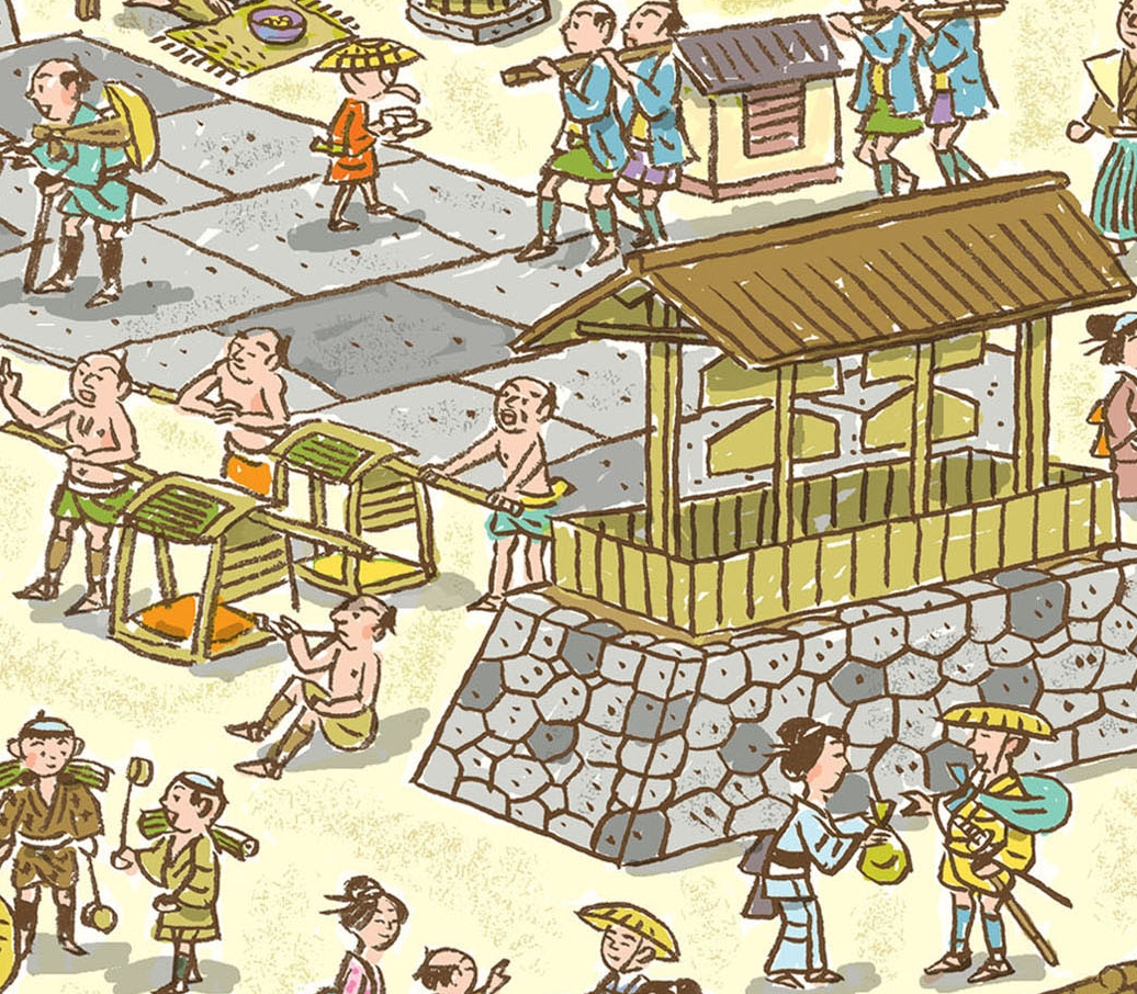 ●和紙に墨線で描いた線画をスキャニングしてフォトショップで色付け後オンデマンド印刷